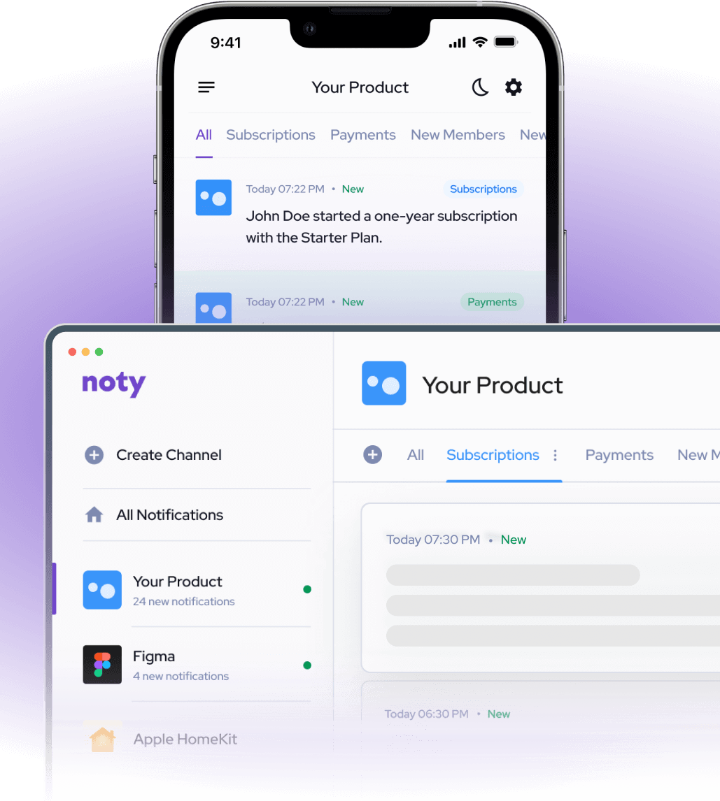 With Noty, you can easily send push notifications to your smart devices through any channel via API or Webhooks. Whether you need to keep track of your workflows, important matters, or simply want to stay in the loop with your team, Noty has you covered.